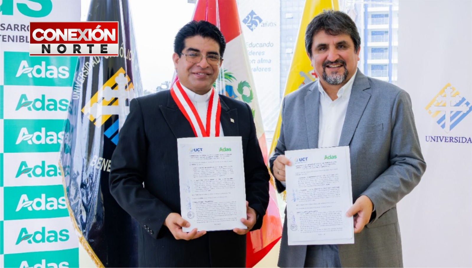 La Universidad Católica de Trujillo (UCT) y la Asociación para el Desarrollo Agropecuario Sostenible (ADAS) suscribieron un importante convenio interinstitucional con el objetivo de fortalecer la relación entre la comunidad académica y el sector agroindustrial, promoviendo así la formación universitaria desde la experiencia.