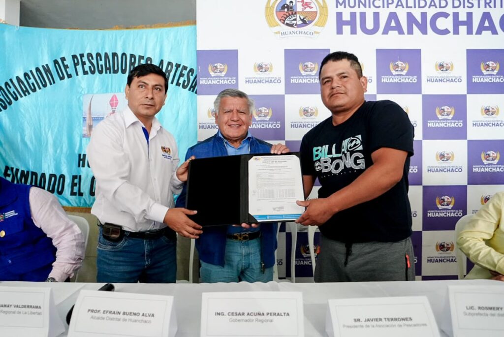 Esto se dio en la ceremonia de entrega de un certificado de posesión que beneficiará a 40 pescadores artesanales, en la cual estuvieron presentes el alcalde distrital de Huanchaco Efraín Bueno, el gerente general del GORE Martín Namay, y el presidente de la Asociación de Pescadores Artesanales, Javier Terrones.