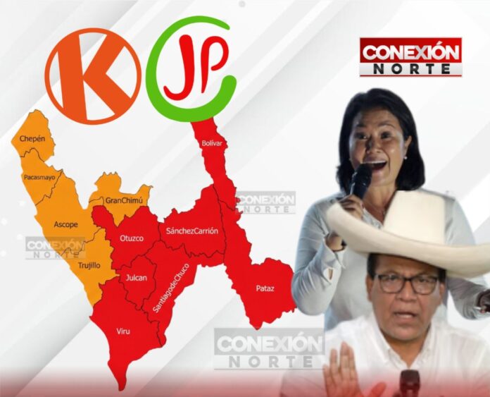 El conteo de la Onpe arroja, faltando poco para cerrar el proceso, que Keiko Fujimori lidera en las provincias de Trujillo (18.3%), Ascope (25.3%), Chepén (27%), Gran Chimú (40.5%) y Pacasmayo (24.6%).