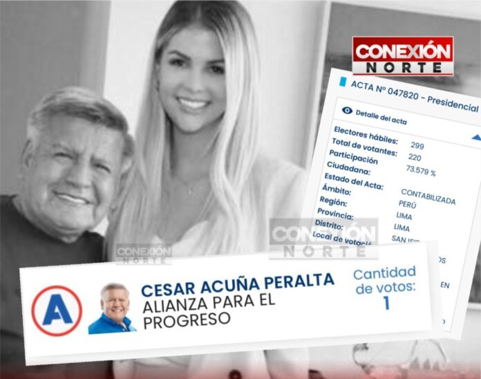 La nuera de César Acuña se quedó sola en las urnas. APP, uno de los grandes derrotados de esta elección, sólo registra un voto en su mesa de votación.
