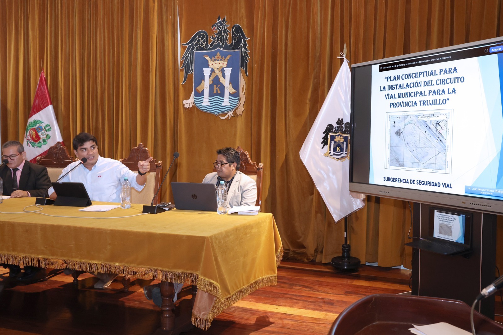 El Concejo Municipal de Trujillo aprobó por unanimidad el Plan Conceptual para la instalación de un circuito vial municipal en la provincia, que fue propuesto y expuesto por el subgerente de Seguridad Vial de la comuna, Neysser Horna Rodríguez, quien señaló que anualmente se beneficiará a unos 15 mil ciudadanos de diferentes edades.