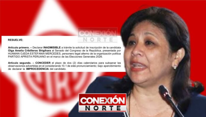 La excongresista y exregidora por el Partido Aprista Peruano, Olga Cribilleros Shigihara, atraviesa un nuevo revés en su carrera política luego de que el Jurado Nacional de Elecciones (JNE) declarara inadmisible su postulación al Senado de la República. La decisión se produce semanas después de que perdiera la posibilidad de integrar una plancha presidencial en la interna del partido aprista.