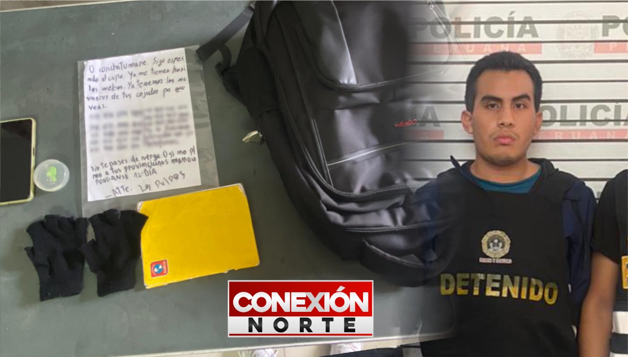 Un estudiante de la Universidad César Vallejo fue detenido la mañana del martes por agentes de la Policía Nacional del Perú. El detenido, identificado como Renato Villena Sunción, de 19 años, fue intervenido mientras se encontraba en plena clase en el aula 606 del pabellón B de dicha casa de estudios. En su poder se encontró un teléfono celular y una carta extorsiva que, presuntamente, sería la utilizada para amedrentar a los profesores.