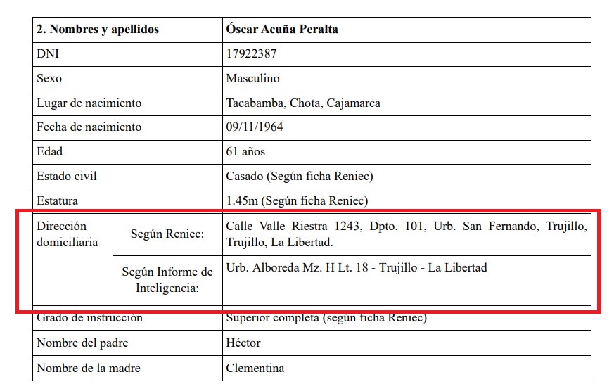 En tanto, Milton Helmer Broca Alcántara y Óscar Acuña Peralta no fueron ubicados, pese a un supuesto seguimiento de inteligencia sobre sus movimientos.