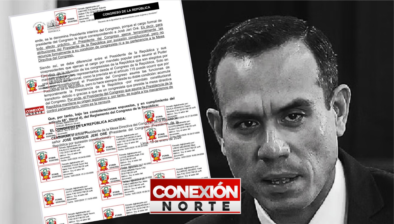 Cabe indicar que si la moción obtiene los votos necesarios en un pleno extraordinario, José Jerí sería censurado como presidente del Congreso, lo que implicaría su salida inmediata del cargo.