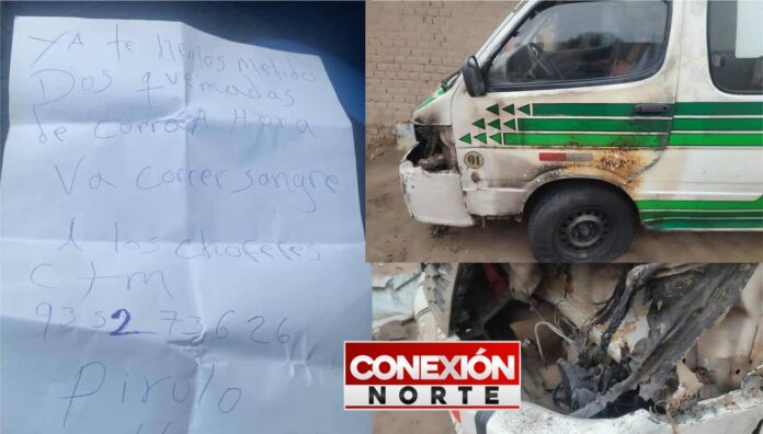 De acuerdo con reportes de usuarios, alrededor de las 7:50 p. m. del último viernes, otra combi de la misma empresa fue atacada a balazos en la zona de Valle Sol, también en Laredo. En el lugar, los extorsionadores habrían dejado una carta con amenazas directas contra la vida de los conductores.