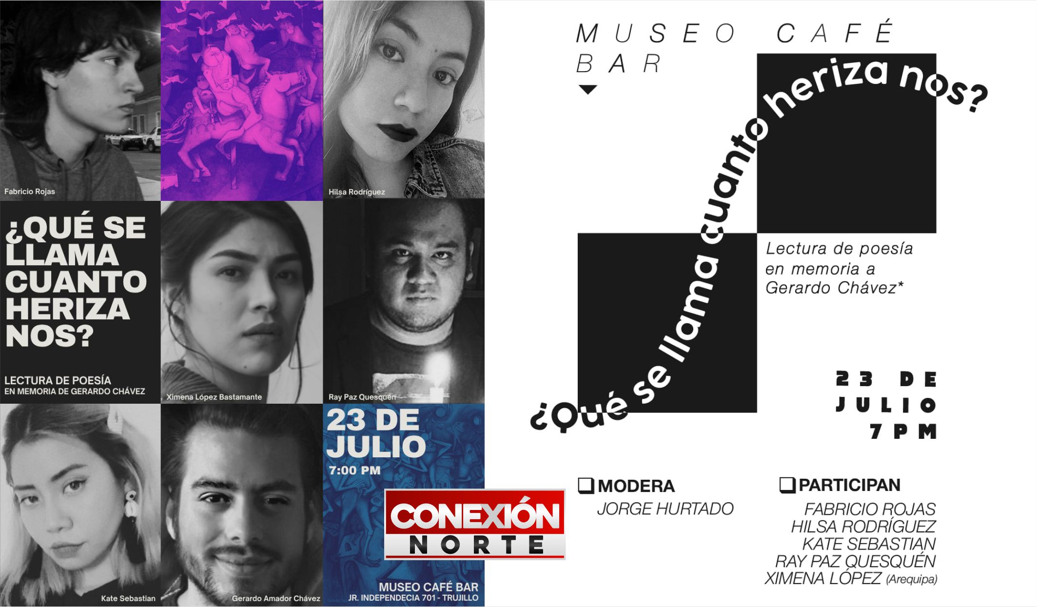 La cita es el miércoles 23 de julio, las 7 de la noche, en el Museo Café Bar, ubicado en Jr. Independencia 701, en el centro histórico de Trujillo. El ingreso es libre.