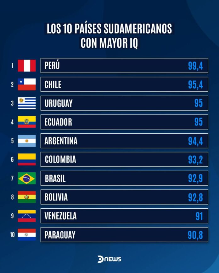 El estudio que, recopiló más de 1.35 millones de evaluaciones realizadas durante el 2024, ha generado gran interés en la región. Esto porque, aunque el Perú lidera en Sudamérica, el ranking global sigue dominado por países asiáticos, como China, Corea del Sur y Japón, que continúan marcando las puntuaciones más altas a nivel mundial en pruebas estandarizadas de inteligencia.