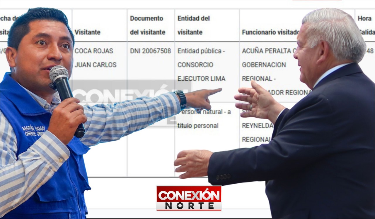El gerente general Martín Namay presentó ante los medios de comunicación un registro de visitas obtenido mediante el portal de transparencia de la Presidencia del Consejo de Ministros (PCM). Basándose en dicho portal, Namay señaló que la visita de Juan Carlos Coca Rojas (padre de Lucero Coca Condori) al gobernador regional el 8 de marzo del 2024 nunca se efectuó, debido a que, bajo el argumento del funcionario de confianza de Acuña, el verdadero destino de Coca Rojas habría sido el Consejo Regional, tal como sale señalado en el registro.