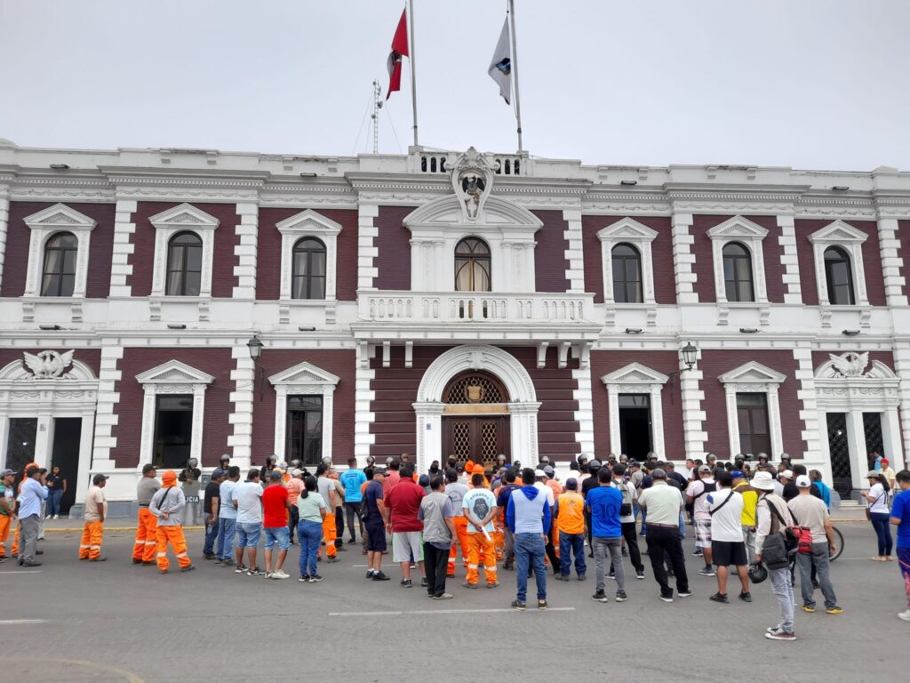 En pie de lucha. Los trabajadores de la Municipalidad Provincial de Trujillo realizaron una protesta para reiterar sus pedidos de aumento de sueldos que están congelados hace varios años atrás y que son insuficientes para cubrir las necesidades de cada una de sus familias.