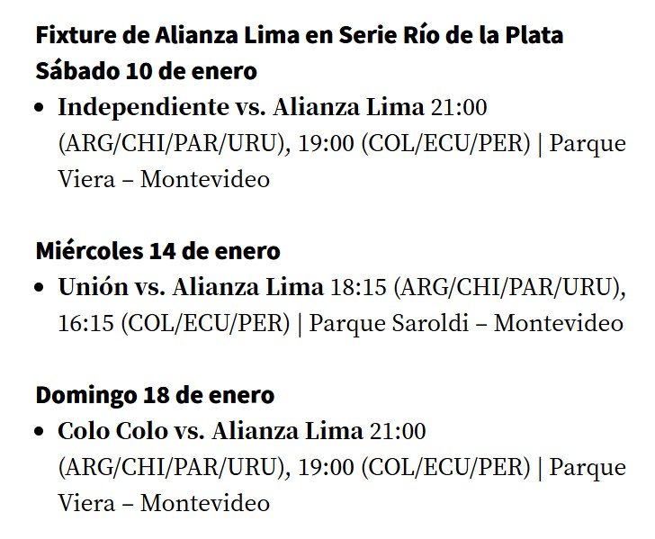 El desafío ahora será traducir la inversión en resultados. Con un plantel renovado y una exigencia máxima desde la tribuna, Alianza Lima iniciará la temporada con el torneo llamado “Serie del Río de La Plata” donde enfrentará a grandes rivales. A continuación, el fixture: